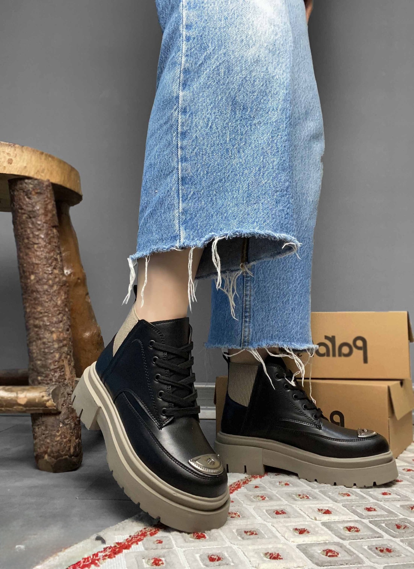 نیم بوت زنانه پاراف مدل پنجه فلزی مشکی طرح2